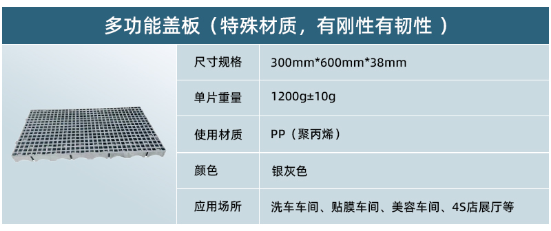 1、 超強耐壓,是唯一一款可以上大貨車,工程車,消防車等重型車輛的洗車格柵。 2、 可以懸空鋪設(shè),在跨度15CM以內(nèi)提供質(zhì)保。 3、特殊材質(zhì),有剛性有韌性。 4、外觀為小孔玻璃鋼款式,防高跟鞋。 5、平鋪后四周可以鋪瓷磚,應用于高檔三膜店,金屬質(zhì)感,高檔豪華。 6、可以橫豎交叉鋪設(shè),鎖扣均可扣接。 7、 應用廣泛,隨意搭配,美觀實用。